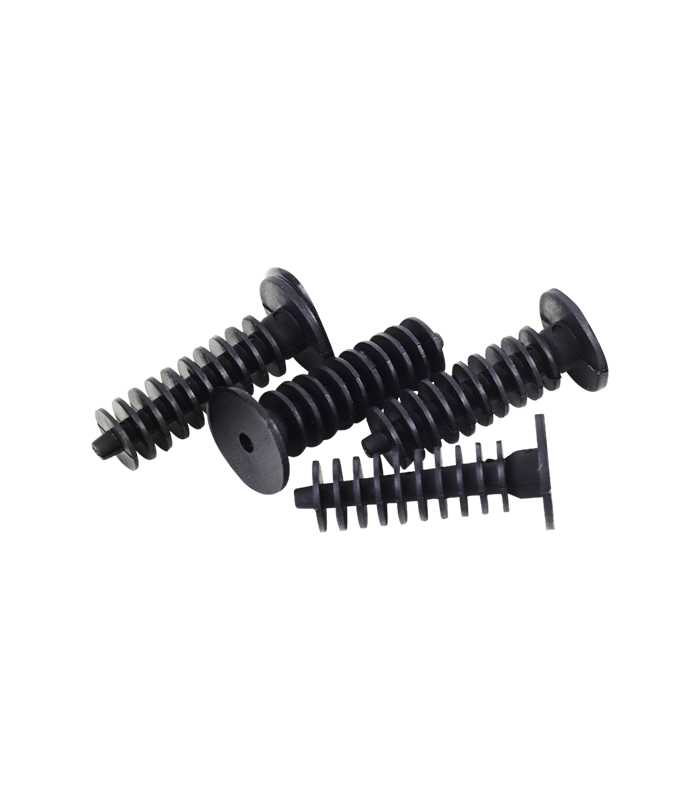 Embases pour plinthe en matière ameliorée et renforcée en PA6 noir.