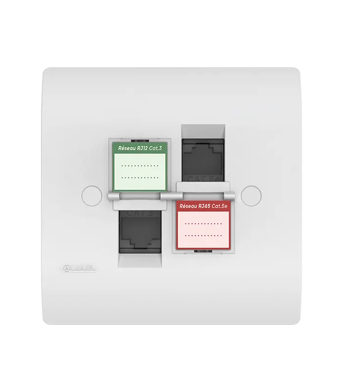 Prise mixte RJ45 CAT.5e + Prise RJ12 CAT.3 + obturateurs